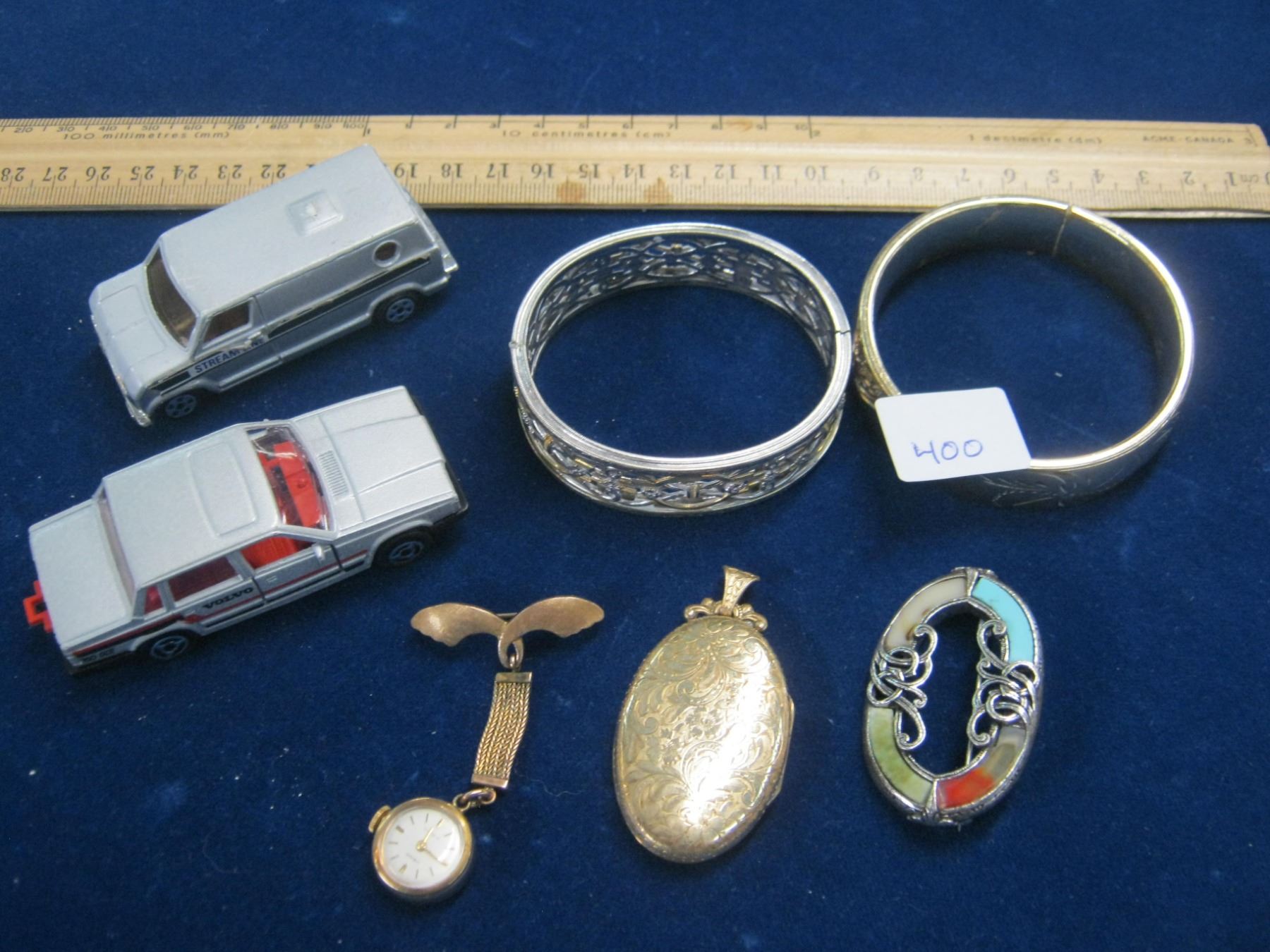 ASST. COSTUME JEWELLRY & 2 KIDS TOY CARS.