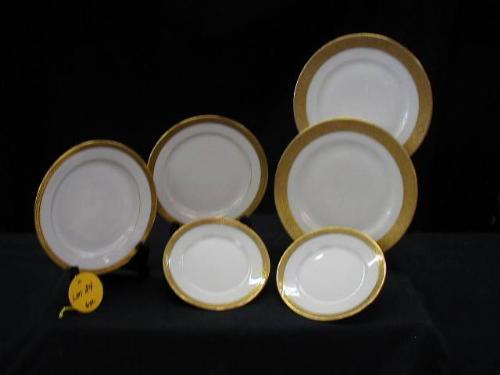 ASST. LIMOGES PATTERNS INCLUDES (2) 7 5/8in PLATES THEODORE LIMOGE HAVILAND 22K BAND, (2) 5 1/8in PLATE WM, GUERIN & CO. LIMOGES WHITE PLATE 22K GOLD BAND EXCELLENT, (2) 6 1/4in PLATE M. REDON LIMOGES WHITE 22K BAND EXCELLENT, 6 PC