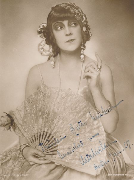 (118-1972) Silent film star actress, one of the most popular leading ladies of the 1910's, and one of the first international film stars. I.S.P., 7'' x 9", Berlin, Jan 1927. Fine.