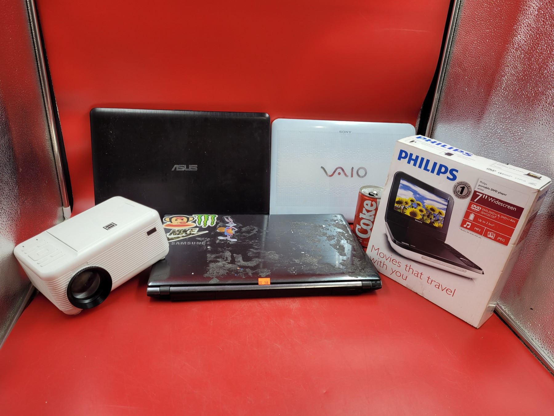 ASUS, Sony, & Samsung Laptops, Projector, & Philips Portable DVD Player