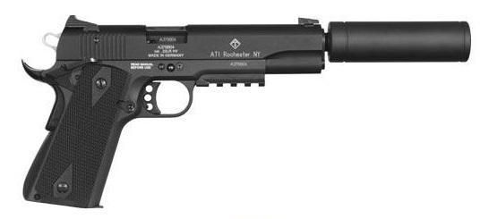 Manufacturer:American Tactical Imports Model #:GSG 1911 AD OPS Type:Pistol: Semi-Auto Finish:Blue Stock:Black Plastic Grips Sights:Fixed Sights Barrel Length:5" without Faux Suppressor Overall Length:12.5" with Faux Suppressor and 8.5" without Weight:38.4 oz with Faux Suppressor and 29.6 oz without Caliber:22LR Capacity:10+1 Action:Single Action # of Mags:1 Receiver:Blue Features:Threaded Barrel Metric M9x75Faux Suppressor, Magazine Disconnect Safety