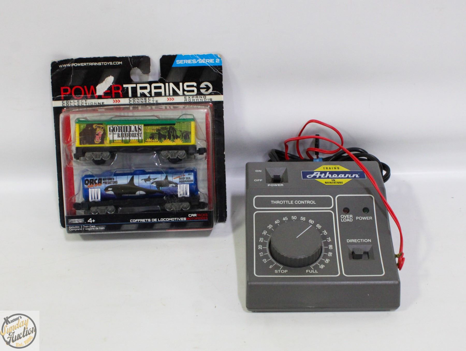 THROTTLE CONTROL POWER PACK #9997 W/NEW IN BOX 2 POWERTRAINS LOCOMOTIVE'S **ALL ITEMS MUST BE REMOVED BY 5PM SATURDAY, NOVEMBER 22ND 2025. ALL REMAINING ITEMS WILL BE SUBJECT TO A $6.00 PER DAY STORAGE CHARGE. ANY ITEMS REMAINING AFTER MONDAY, DECEMBER 8TH 2025 WILL BE CONSIDERED FORFEITED. NO REFUNDS WILL BE ISSUED FOR FORFEITED ITEMS. TO SCHEDULE A PICK UP APPOINTMENT CLICK HERE