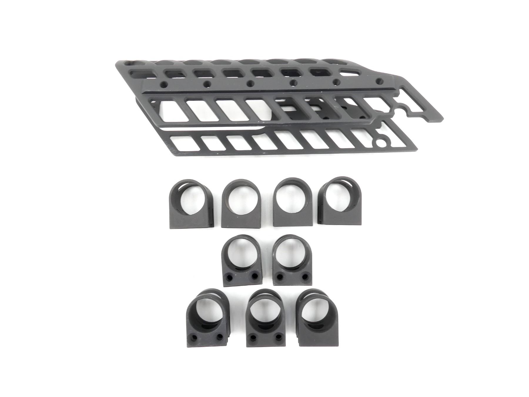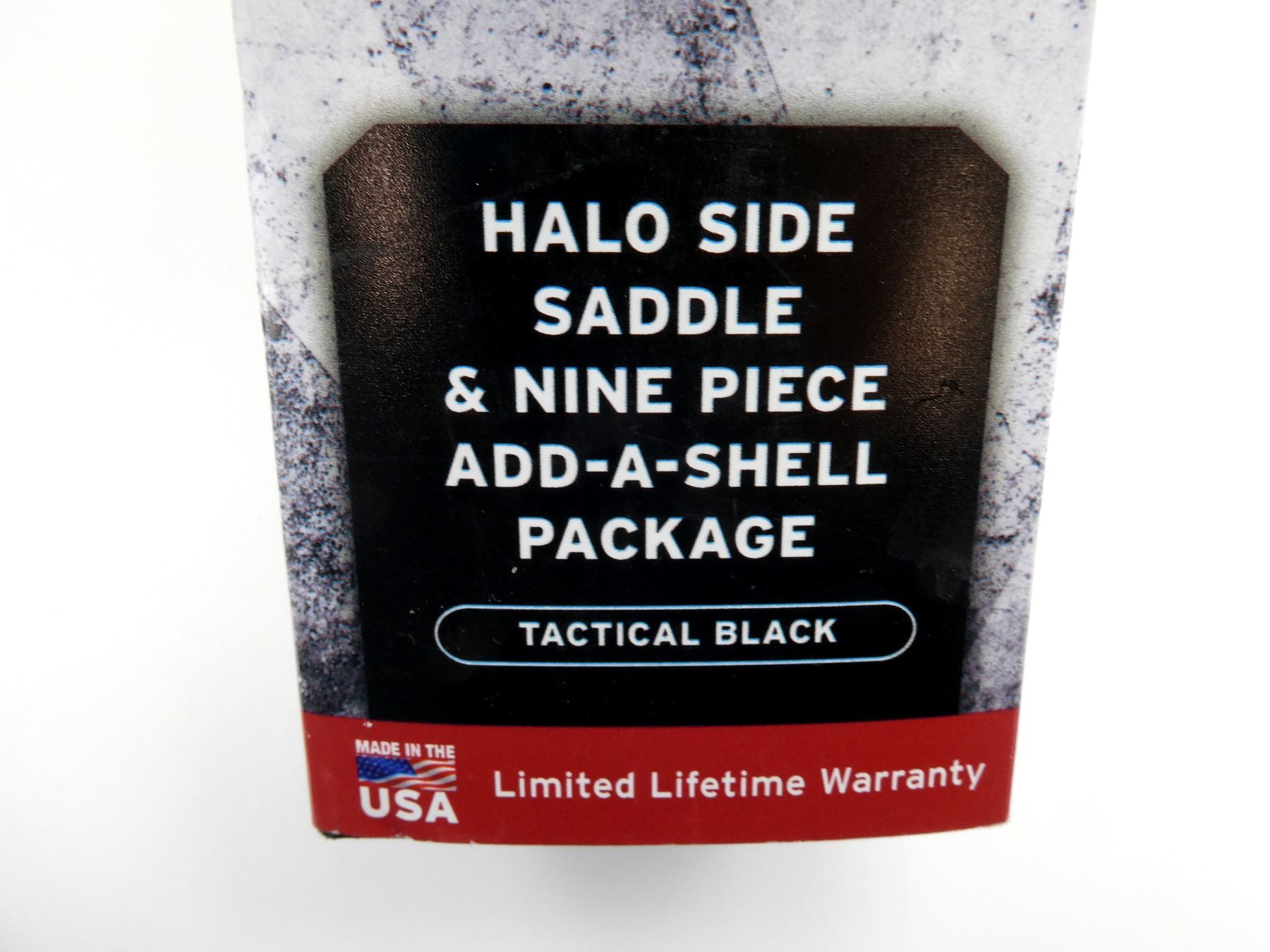 LOT INCLUDES; (1) 12 G. TACTICAL HALO SIDE SADDLE, BLACK ALUMINIUM, PART #: A5101002 & 9-PIECE ADD-A-SHELL, APPEARS NOS IN ORIGINAL PACKAGING. MAY REQUIRE FITTING. SEE PHOTOS.
