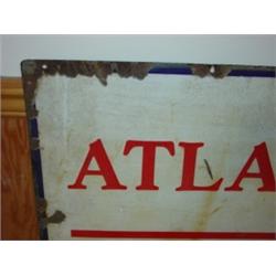 ATLANTIC WHITE FLASH PORCELAIN ADVERTISING SIGN. One sided. Rusting to edges. 35.5" x 51.75".