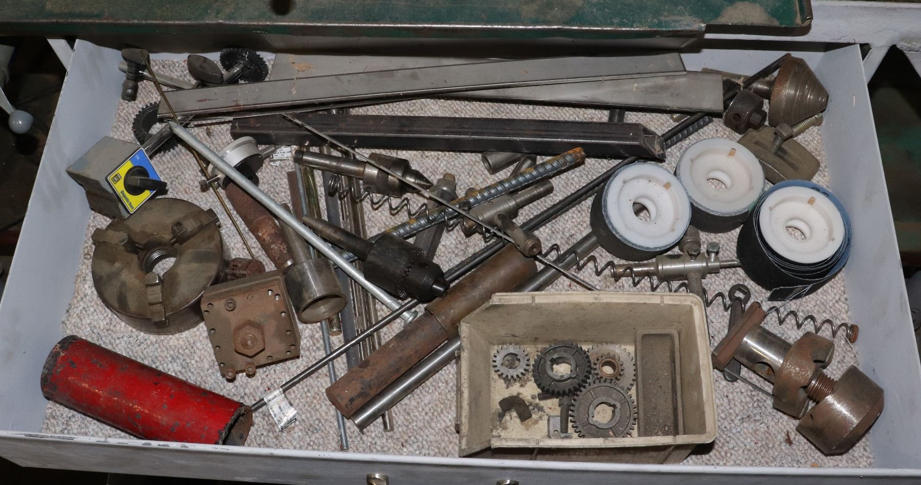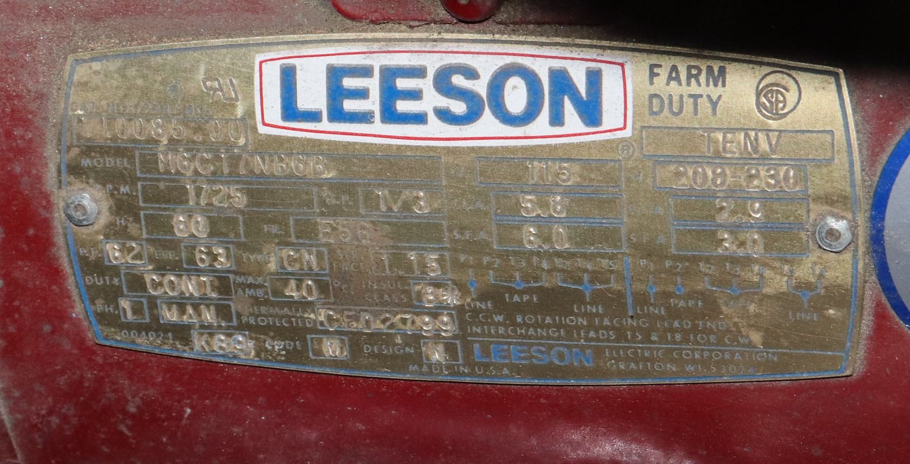 ADDITIONAL ACCESSORIES. LEESON MOTOR. UNIT IS HEAVY!! NO LIFTING ASSISTANCE PROVIDED, MUST BRING OWN HELP/ MACHINERY TO LIFT. RECENTLY VIEWED BY PERSON WITH SIMILAR UNIT. THIS UNIT DOES HAVE SIGNIFICANT PLAY IN PARTS THAT SHOULD NOT HAVE ANY. STILL LOTS OF GREAT PARTS OR GREAT PROJECT UNIT. DOES POWER ON AND MAJORITY OF EVERYTHING IS FUNCTIONING