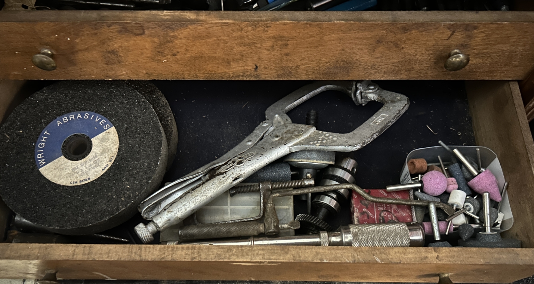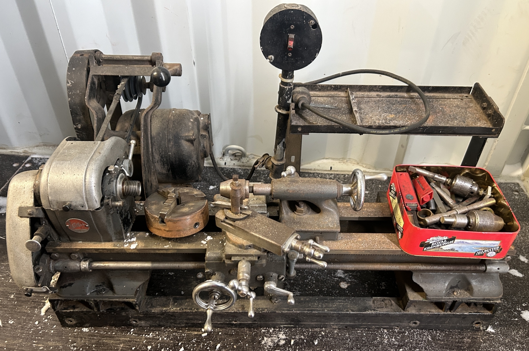 NOTE: 24 INCH TABLE. INCL CABINET WITH BITS, TOOLING, ETC. RUNNING WHEN TESTED.