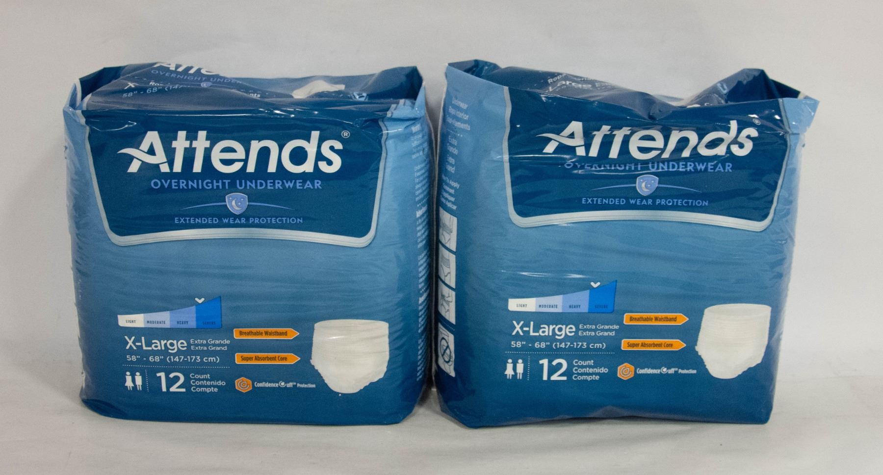 ATTENDS XL OVERNIGHT UNDERWEAR, 2 UNOPENED