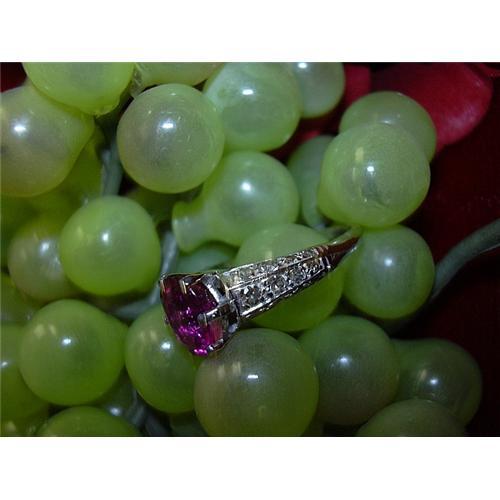 THIS IS A BEAUTIFUL RING WITH A CENTER RUBELLITE TOURMALINE. THE RING IS DECORATED ON BOTH SIDES WITH SMALL DIAMONDS.
