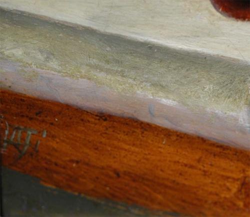 ATTRIBUTED TO ANDREW H. WAY 9 1/2"x10" oil on board monogramed lower left old label verso identifies artist, period frame