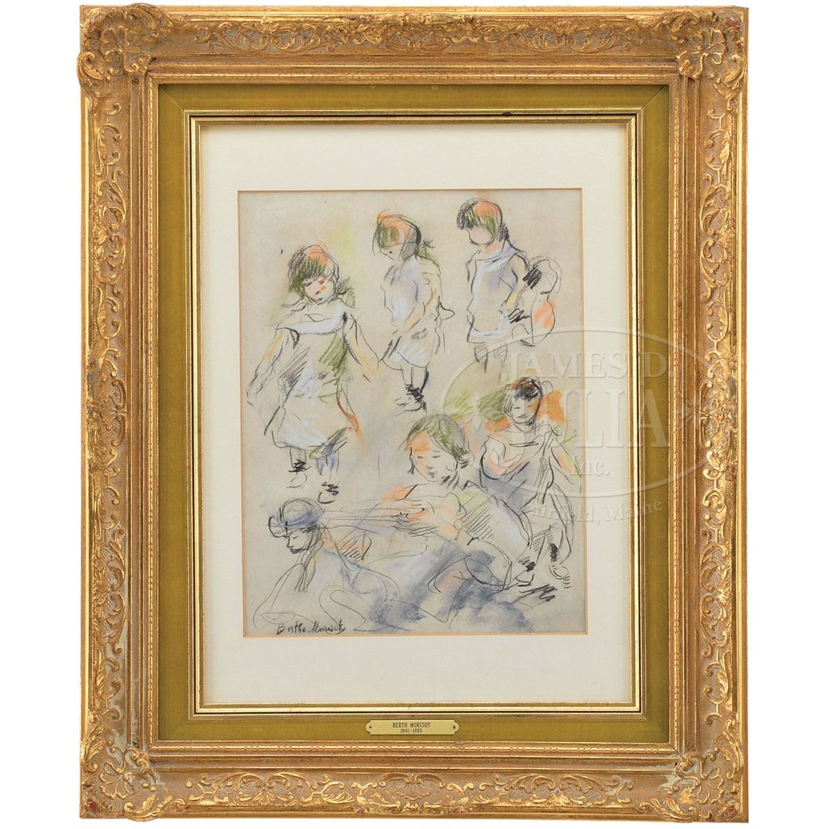 Pastel on paper Housed in a modern gilt frame with decorative liner and matte behind glass Signed lower left "Berthe Morisot" SIZE: Sight: 12" x 9-1/4". Overall: 21-3/4" x 18". PROVENANCE: Acquired from a Bala Cynwyd, Main Line, Philadelphia Estate. CONDITION: Very good. 9-28797