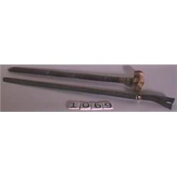 ATYPICAL INDONESIAN KRISS, late 19th/early 20th century, with carved ivory crossguard and ivory inlaid wooden scabbard; 28-1/2 inch length