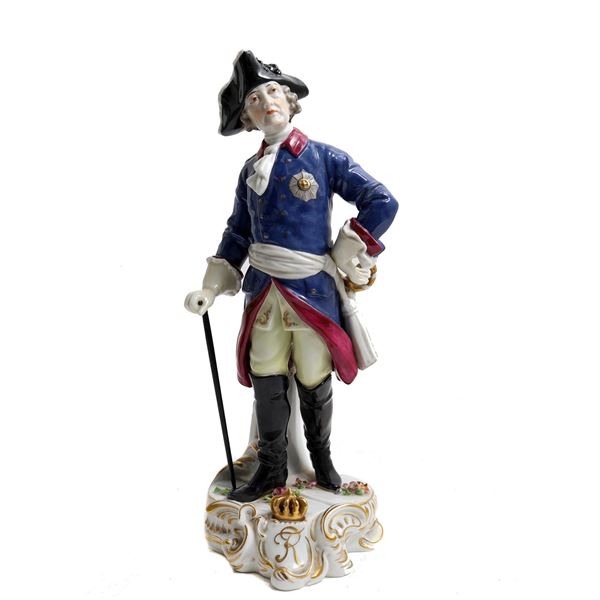 A larger porcelain figurine depicting Frederick the Great by Fredericksburg, 19th century. Excellent.