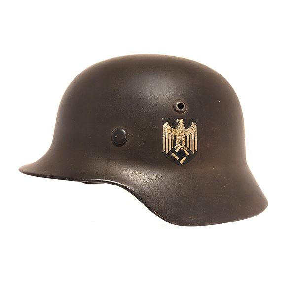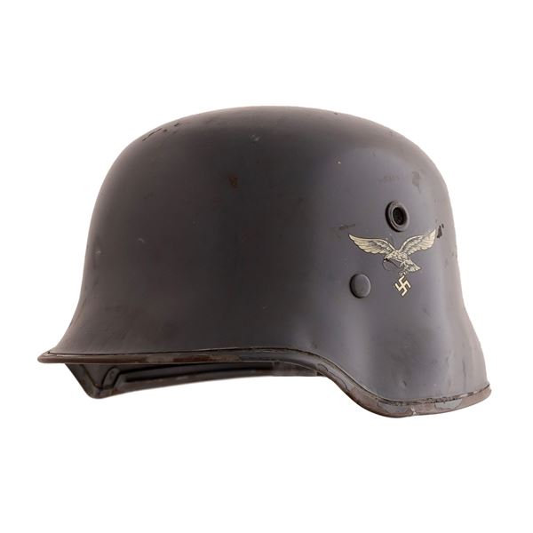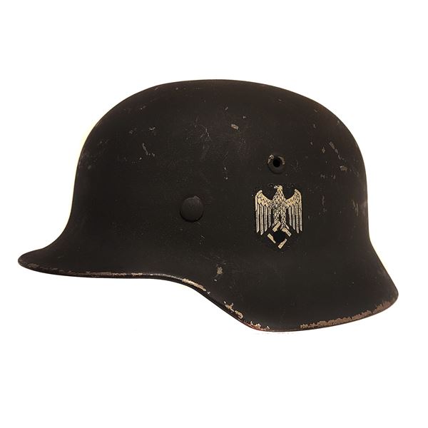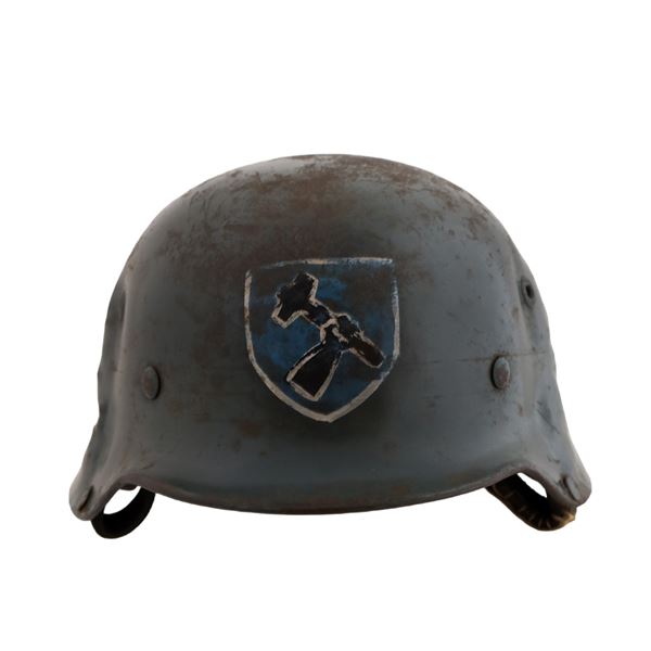 A WW2 GERMAN SS SINGLE DECAL HELMET WITH LINER