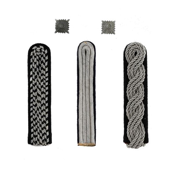 THREE PRE-WW2 GERMAN SS SHOULDER BOARDS AND TWO STRAP PIPS