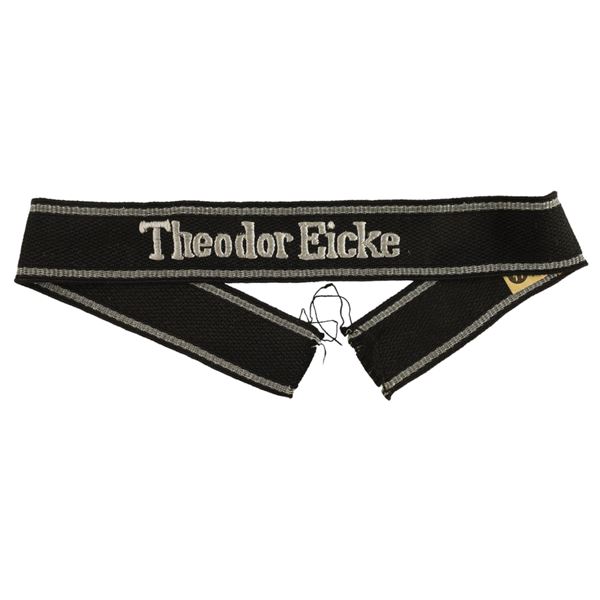 A Nazi German 'Totenkopf' cufftitle of the 3rd SS Panzer Division in very good condition. This example retains its RZM tag. Very good.