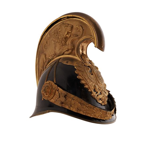 It is unusually large in comparison to the rest of the similar shield we would offer in the past. Of a round convex form with four domes and a hammere