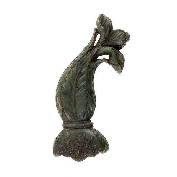 A green khanjar dagger dark-green jade hilt with a lotus bud on the pommel, carved with two symmetrical flower leaves on each side. India, 18-19 cc.