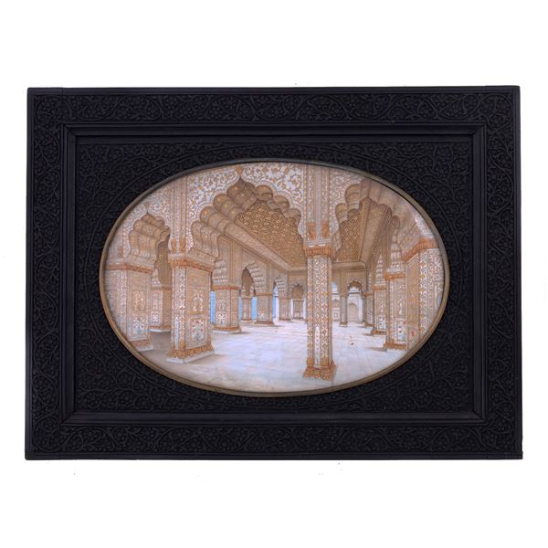AN INDIAN TAJ MAHAL INTERIOR MINIATURE PAINTING, 19TH CEN.