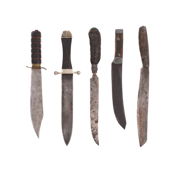 A SET OF FIVE KNIVES, MOSTLY AMERICAN, ONE BY TIFFANY AND CO.