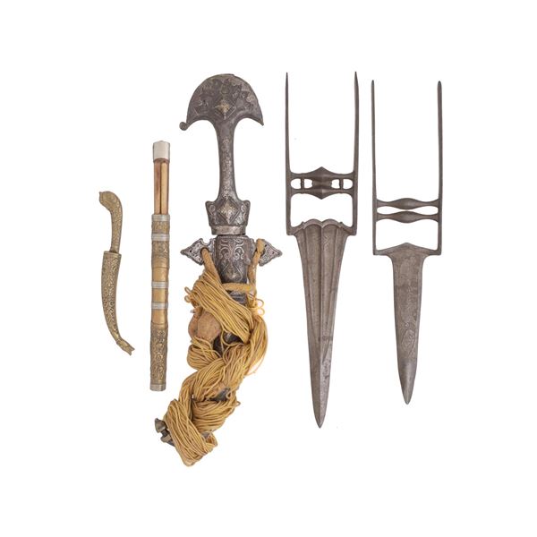 A SET OF FIVE DAGGERS INCLUDING TWO INDIAN KATARS AND A JAMBIYA
