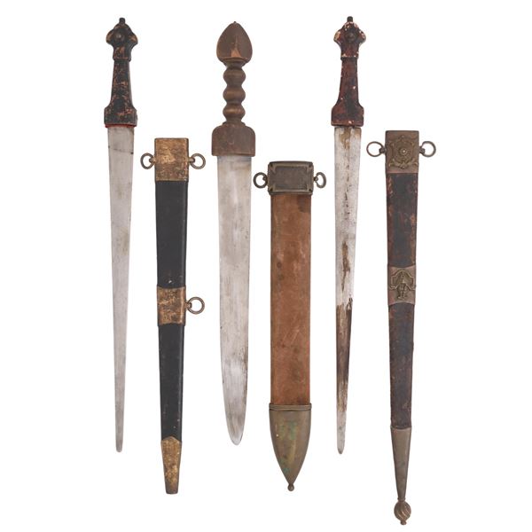 A SET OF THREE SHORT SWORDS APPEARING TO EMULATE ROMAN SWORDS