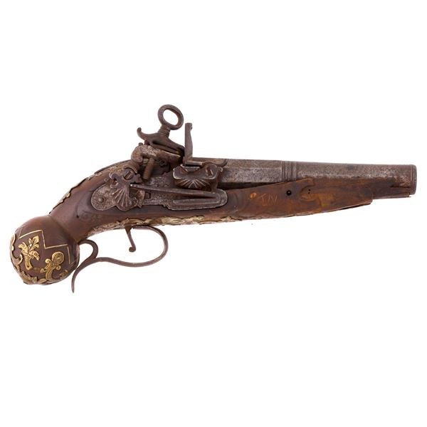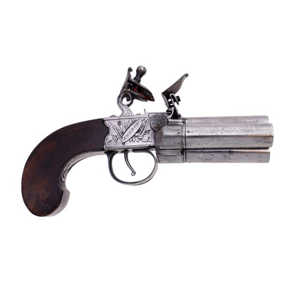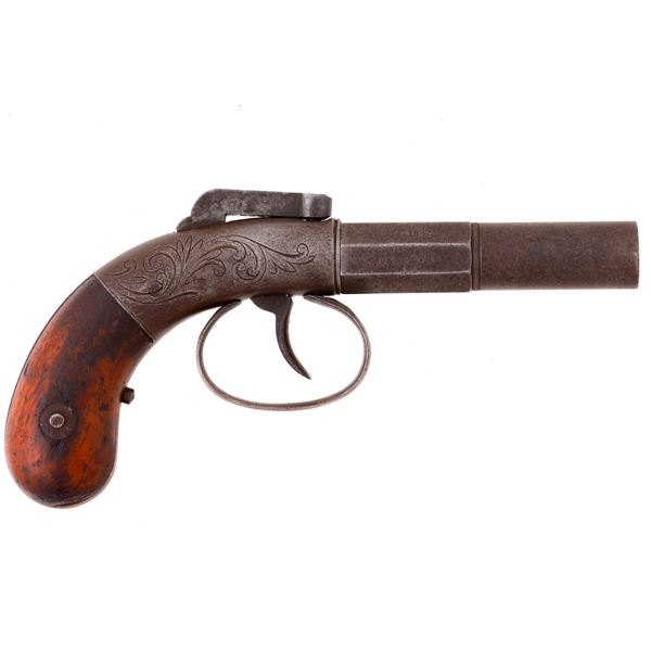 A 19th century European side-by-side pinfire 'howdah' pistol, possibly Belgian. It is a smoothbore gun with a bore diameter of 15mm. The smo...