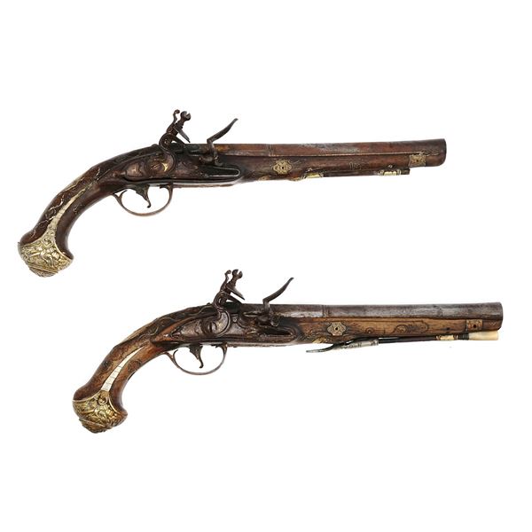 An exceptional pair of Saxon cavalry percussion pistols considering its condition and rarity. Ca. 1860. Very good with excellent action, minor scratc