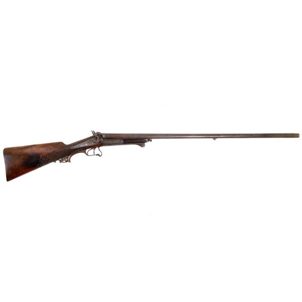 .577 cal., side-by-side percussion rifle by F. A. Braendlin London circa 1863-5. The Mont Storm hinged breech was patented by Mont Storm in England in