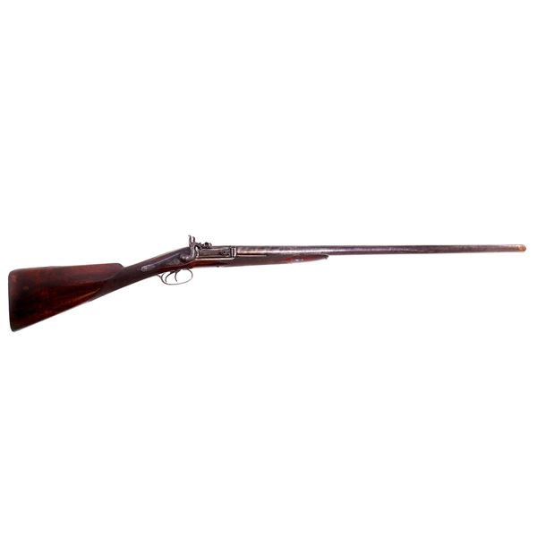 English double-barrel percussion shotgun, likely manufactured in Birmingham. The bore is in good condition, and smooth. Ca. 1860 Very good with expec
