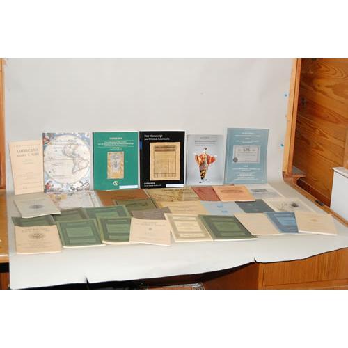 AUCTION CATALOGS - BOOK RELATED. A Group of 33 Volumes. Sotheby Parke Bernet; Sotheby & Co.; Sotheby's; Historicana, Soft Cover. Very Good condition. Includes Stock Certificates & Bonds, Collection of C.E. Kenney, Science & Medicine, Masonry, Phrenology. Law, Natural History, Collection of Otto Schafer, Fine Manuscripts, Incunabula, Ballet Material from the Serge Lifar Collection, William E. Stockhausen Collection, Early Newspapers, Maps and more. Some have prices written in.