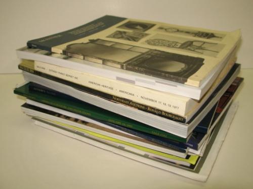 LOT OF 13 MIXED AUCTION CATALOGUES. Features catalogues from Skinner (August 18, 1990), James D. Julia (August 25-27, 2004 & August 20-22, 2003), Sotheby’s (November 17-19, 1977; October 23, 1994; June 22, 2004), Northeast Auctions (May 21-23, 2004 & March 2, 2002), Weschler’s (January 18, 1997), & others.