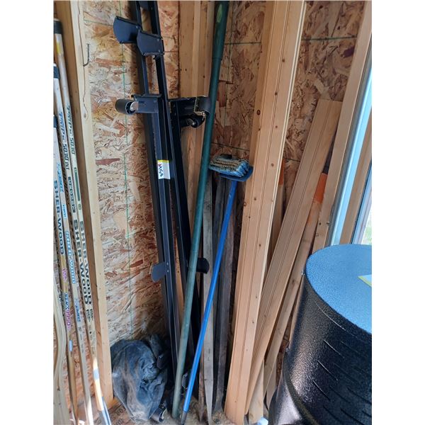 PAIR ADJUSTABLE WOOD CRUTCHES & LEFT HAND - HOCKEY STICKS (X4)