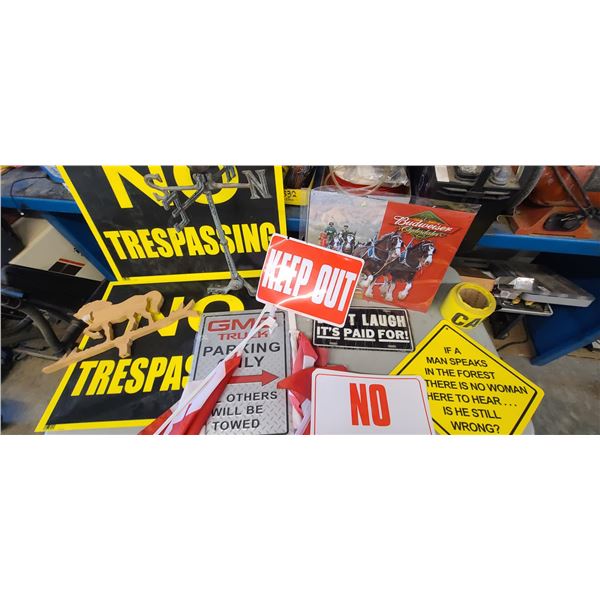 MIXC. ASSORT. SHOP SIGNS, FLAGS, WORK GLOVES, ETC