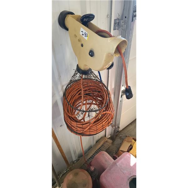 SHOP BROOMS (X2) WALL MOUNTED WONDER WINDER AND EXTENTION CORD