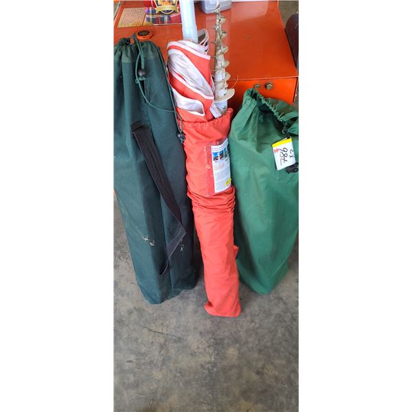 BEACH UMBRELLA AND CAMPING CHAIRS