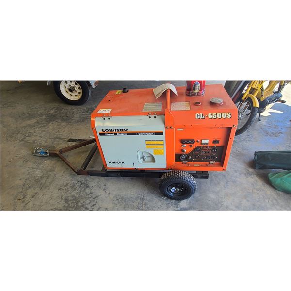 KUBOTA LOWBOY DIESEL GENERATOR MODEL CL-65005 W/ZB600 - EGL- S ENGINE S/N 100790 #6-B. MOUNTED ON