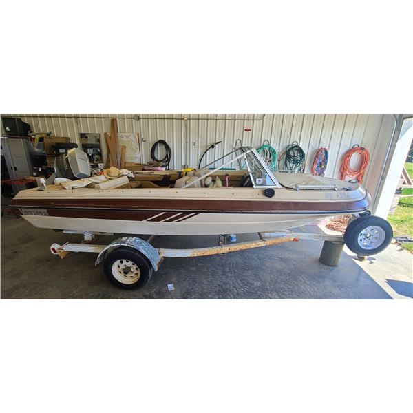 VANGUARD FIBERGLASS HAUL WITH EVINRUDE VRU 70 OUTBOARD MOTOR - COMES WITH TRAILER, THREE BOAT BUMPER
