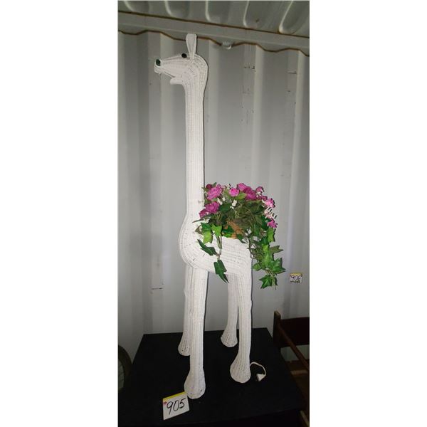 BLACK STEREO STAND C/W STEREO & LIGHTED WICKER GIRRAFF PLANT STAND