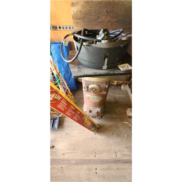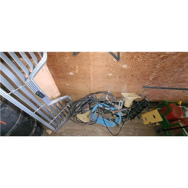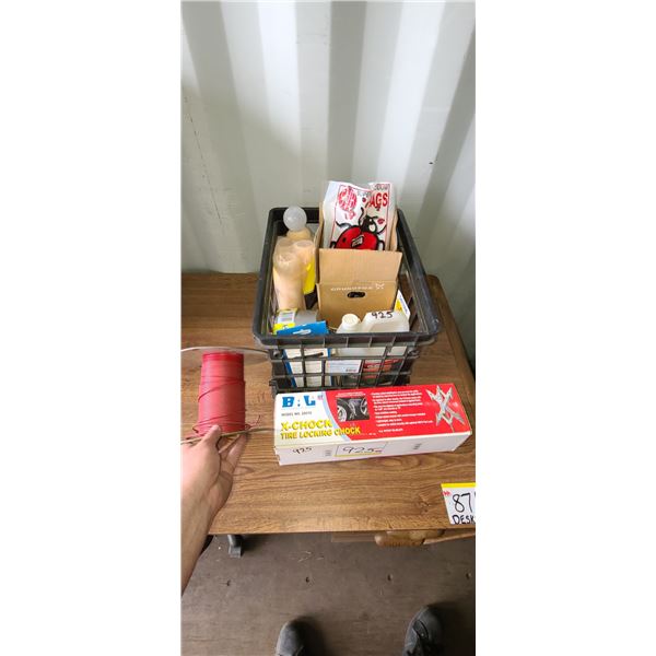 TIRE LOCKING CHOCK & MISC. ITEMS INCL GRUNDER H20 PUMP