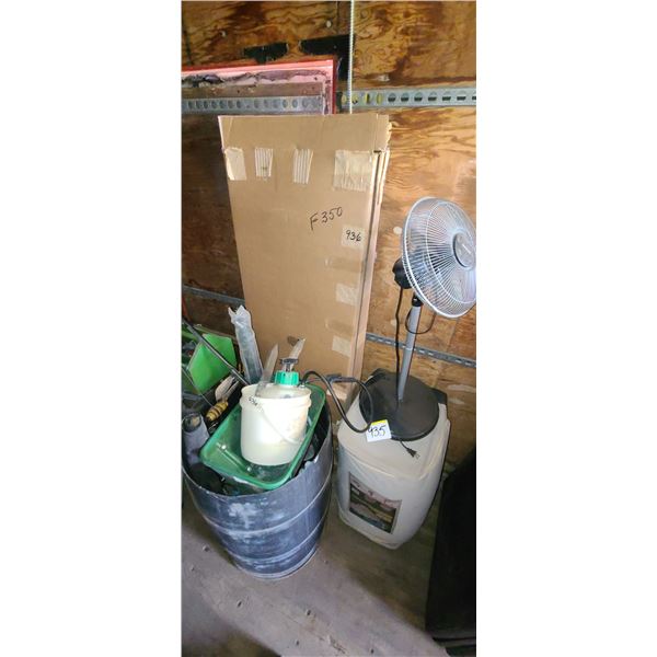 SEEDER, MANUAL HERBICIDE APPLICATOR 36"; GARDEN TOOLS, H20 HOSE; CHAIRS, ETC.