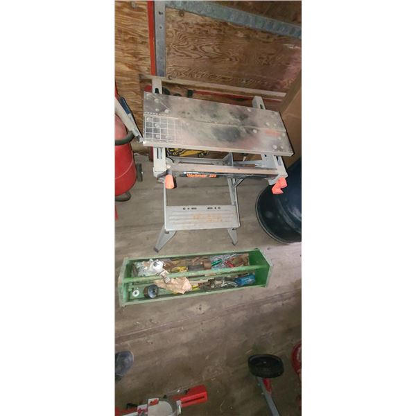 WORK HORSE 7 WOOD BOX W/ ASSORTED TOOLS