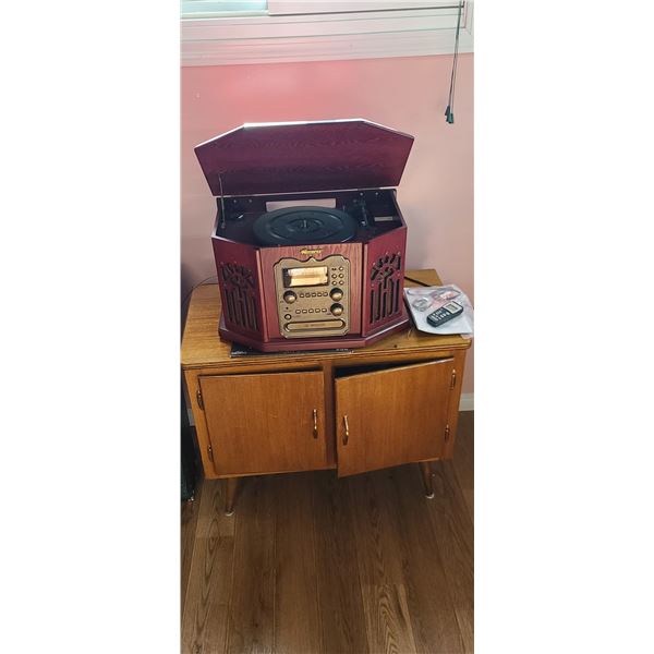 MEMDREX TABLETOP RADIO/RECORD/CD PLAYER AND RECORD CABINET