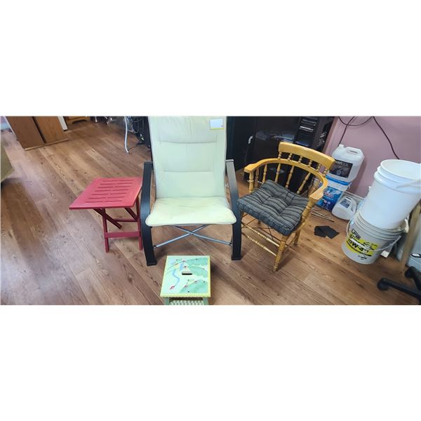 PATIO FURNITURE: TABLE, CHAIRS AND A FOOT STOOL