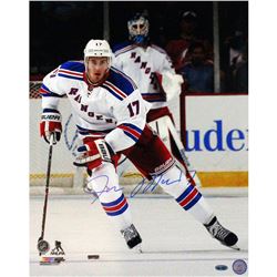 John Moore New York Rangers White Jersey Signed Vertical 8x10 Photo