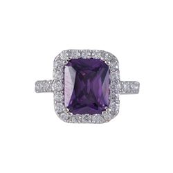 Amethyst Color Round CZ, Surrounded With White Czs, Sterling Silver Ring Size 5