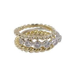 Gold Over Sterling Silver & Sterling Silver 3 Ring Set, With White Czs, Size 5