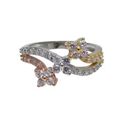 Tri Color Sterling Silver, 3 Flower Ring With White Czs, Size 7 Dimensions: 20Mm Wide X 13.8Mm Long X 4.75Mm Deep