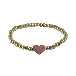 Gold Plated Brass Ball Stretch Bracelet With Light Pink Enamel 7X9mm Heart- 5
