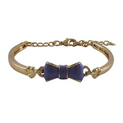 Turquoise Bow On Turquoise Enamel Gold Plated Brass Bangle Bracelet, 5.5" 2"