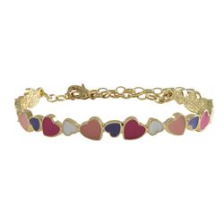 Pink Multi Enamel Hearts, Gold Plated Brass Bangle Bracelet, 6" 2"